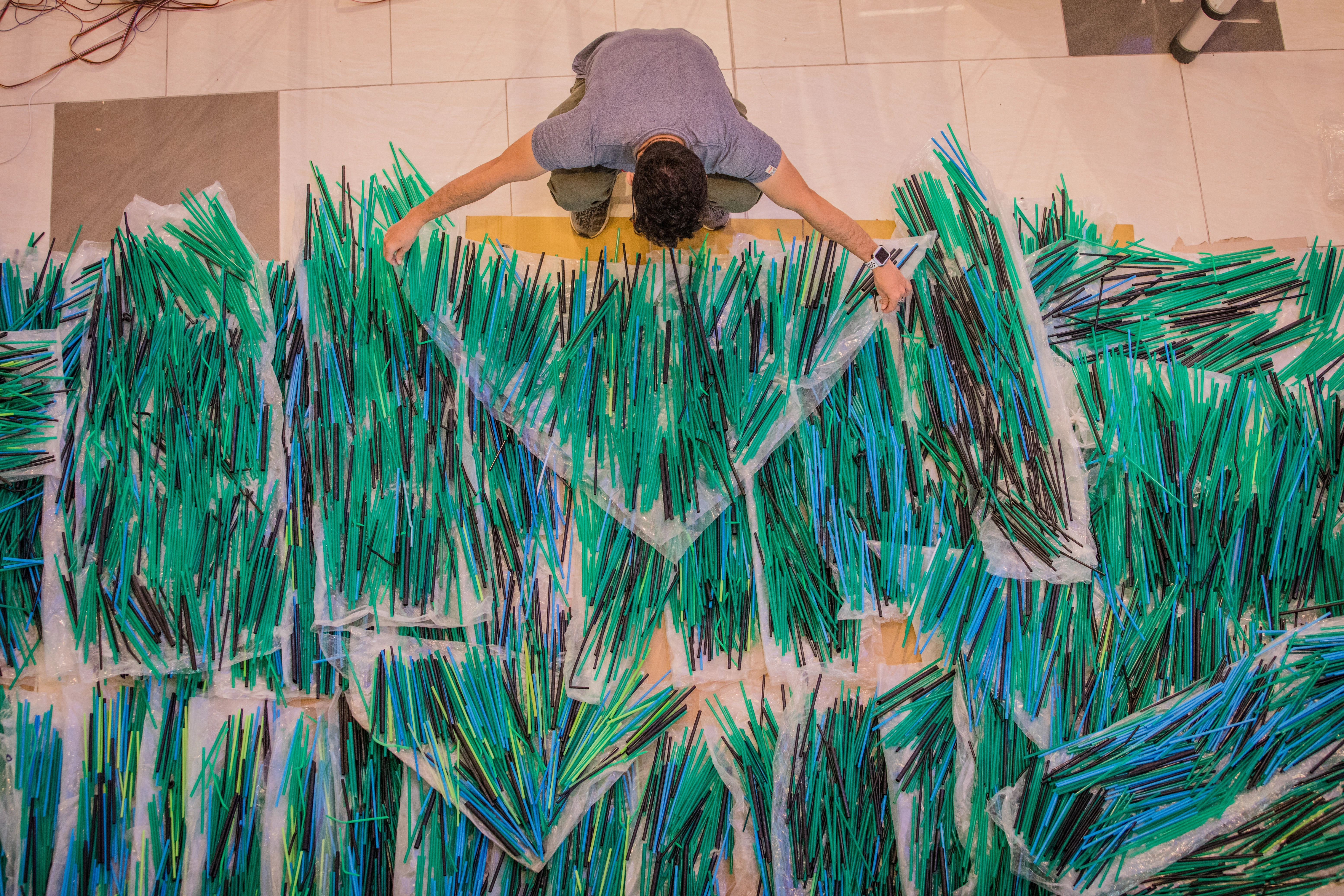 "This is what the future is going to look like," Benjamin said, pointing to the huge pile of plastic straws that would be assembled to resemble sea waves.