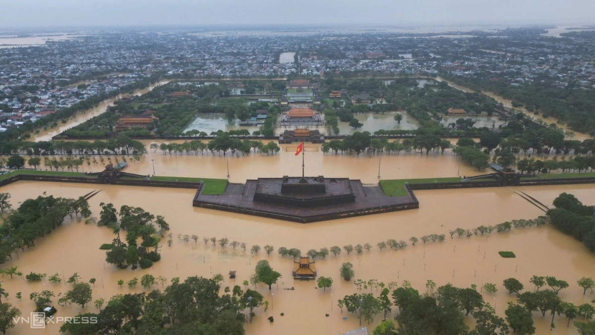 On Oct. 27, the Bo River in Hue crested at 5.31 meters, surpassing the record flood of 2020. Three days later, the Thu Bon River in Hoi An rose to 5.62 meters, exceeding the historic flood level of 1964 by 0.14 meters.