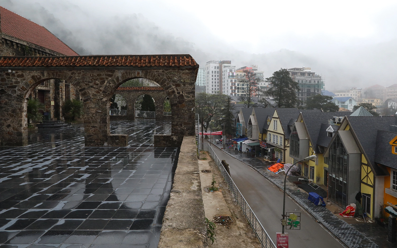 There is a large yard outside surrounded by arched walls. From here, one can see the whole town with its villas, hotels, guesthouses, markets, and chayote gardens swirling in the mist.
