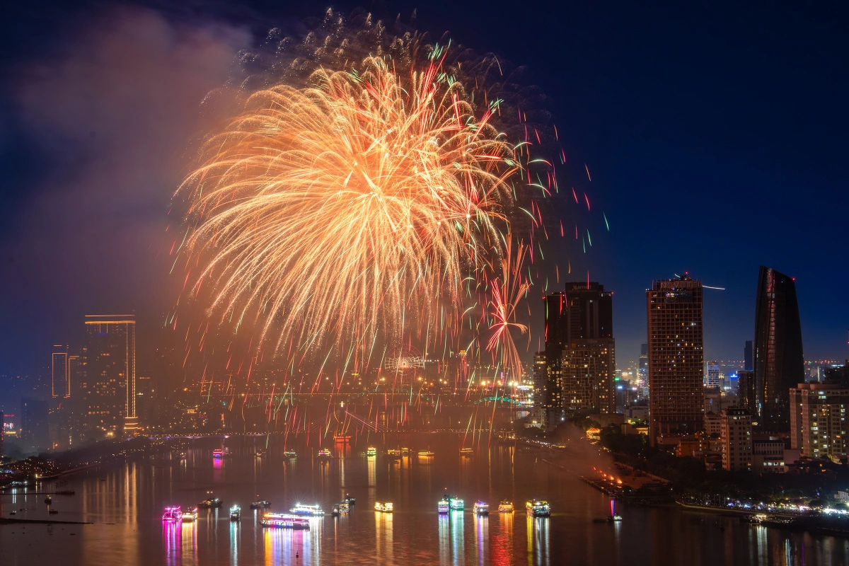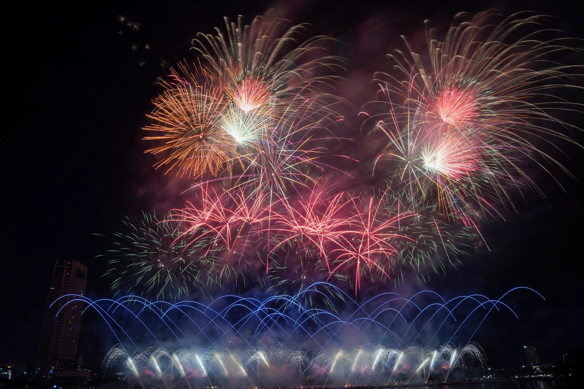 From another building near Thuan Phuoc Bridge, viewers enjoyed a three-layered fireworks formation, one of the team’s visual highlights.