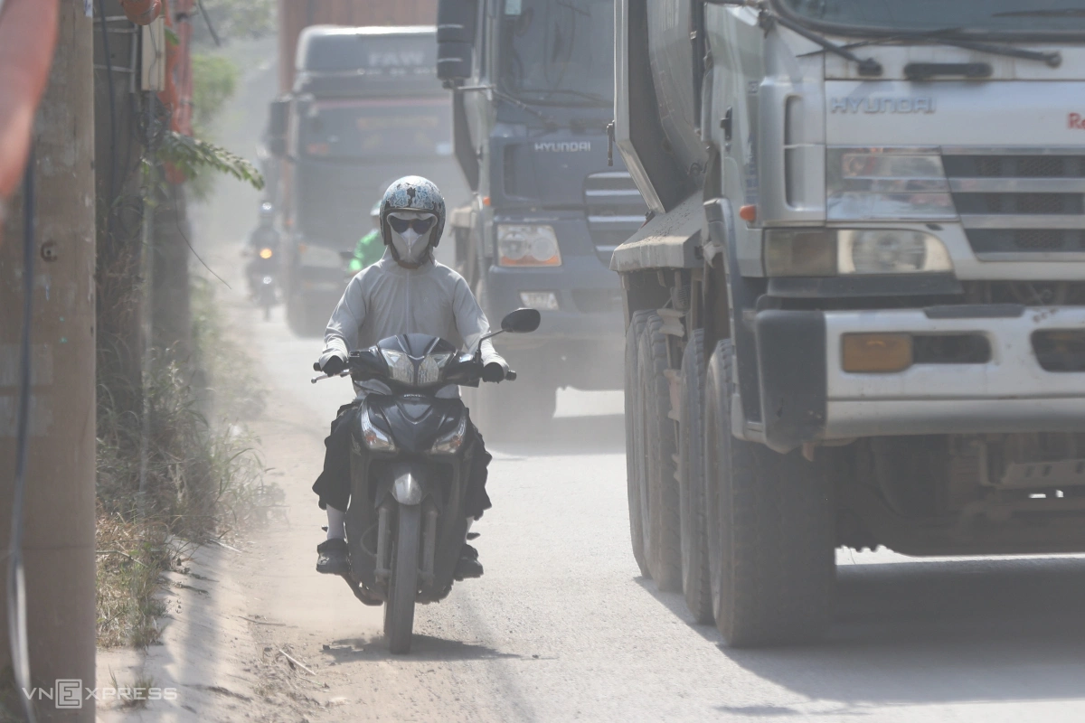 The worst section is where it intersects with the Hanoi Highway, and there dust hangs in the air like fog, reducing visibility so much that many vehicles have to turn on their lights even at noon.